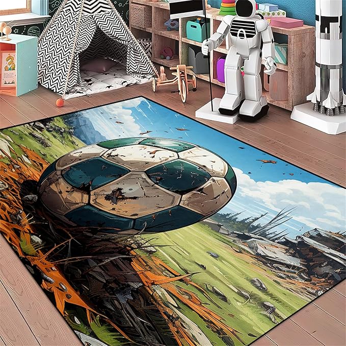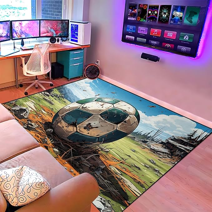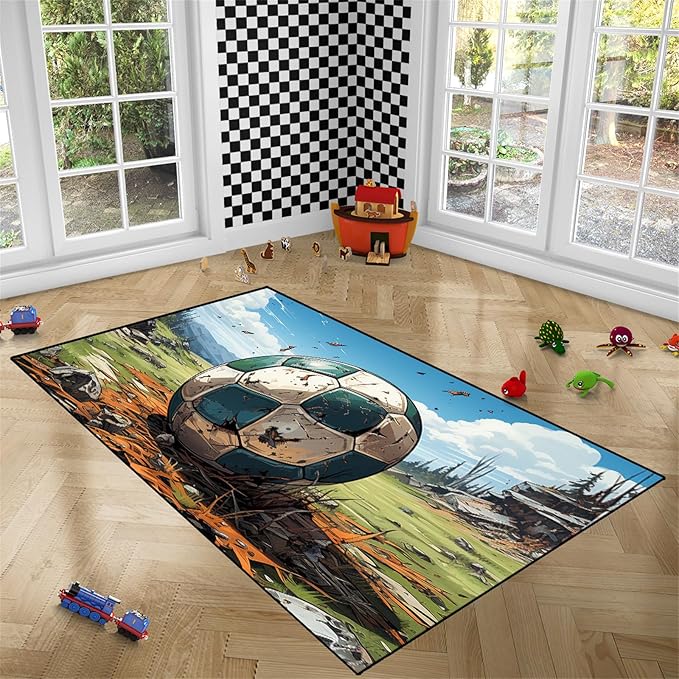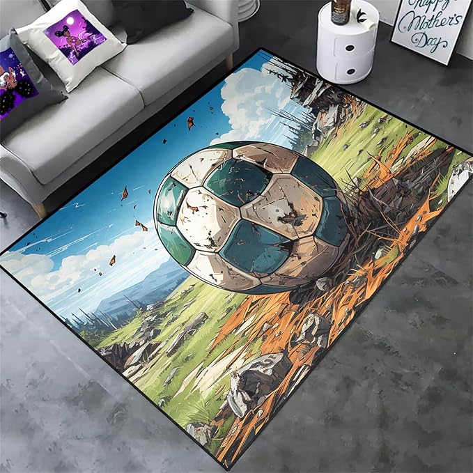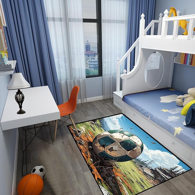 Football Rug for Boys Bedroom - Kids Rug Football Rug Basketball Rugs for Teen Boys Bedroom Football Carpet for Boys Bedroom Football Rugs for Boys Girls Sports Room,4'×5'