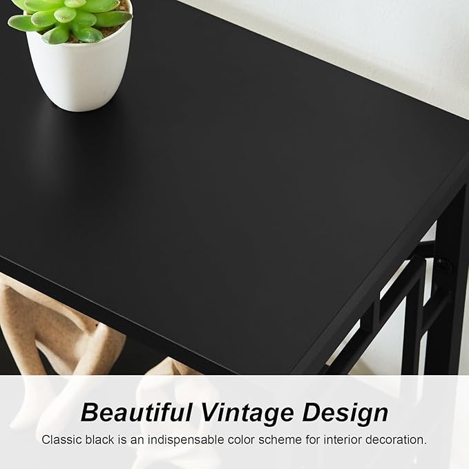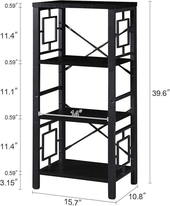 Bookshelf, Vintage Industrial 4 Tier Bookshelf, Freestanding Narrow Bookcase with Rustic Wood and Metal, Small Bookshelf for Home Office, Bedroom & Living Room, Black