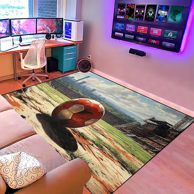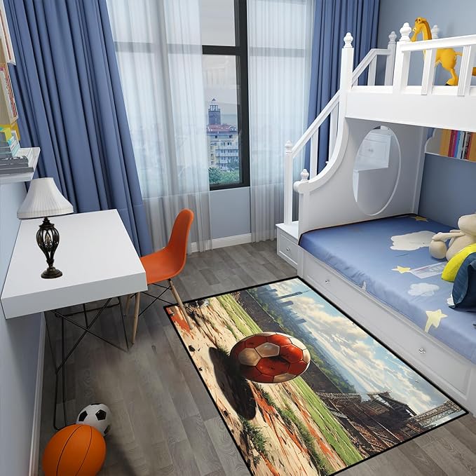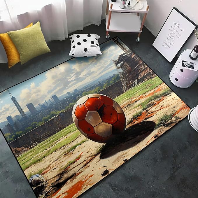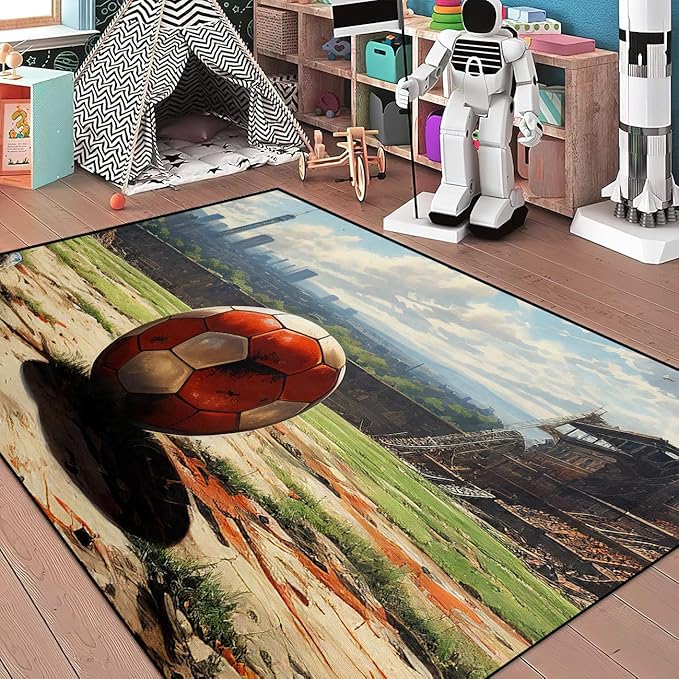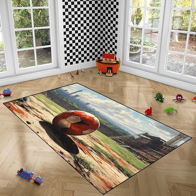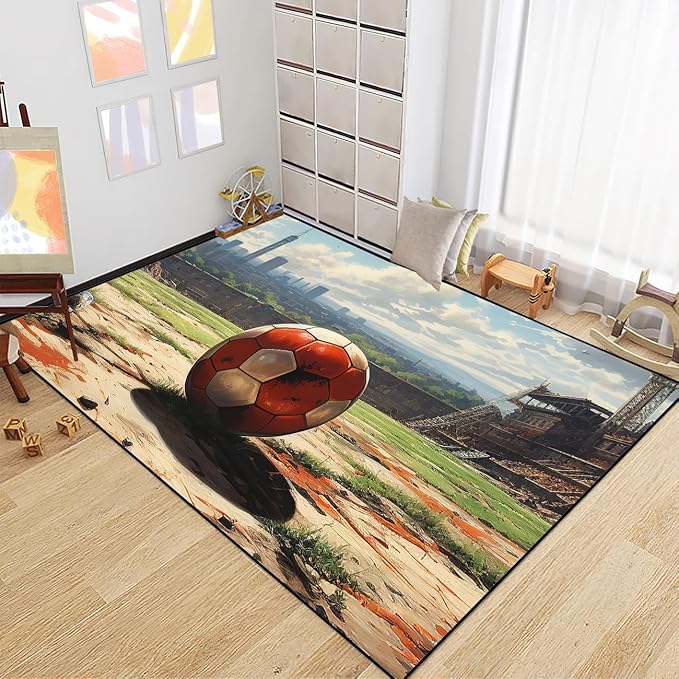 Football Rug - Football Decor for Boys Bedroom Soccer Rug for Play Area Football Printed Rug for Kids Room Basketball Rugs for Teen Boys Bedroom Playmat Area Rugs for Kids Rooms,4'5''×6'