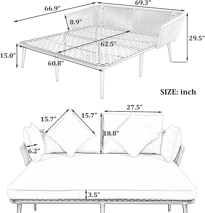 About This Iron + Pvc + Nylon [Enjoy 2-Person Daybed Set] Experience the epitome of outdoor luxury with our spacious...