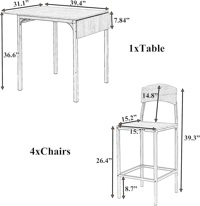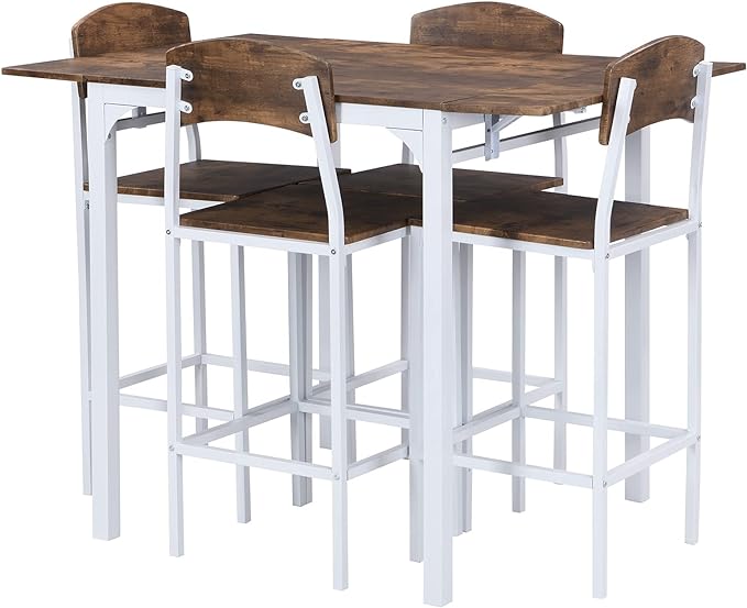 NicBex Small Dining Table Set for 4 Counter Height Dining Table Set Modern 3-Piece Round Dining Table Set with Drop Leaf and 2 Chairs for Small Places, Space-Saving, Rustic Brown