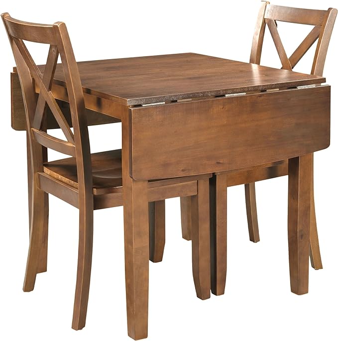 NicBex Kitchen Table for 2 Dining Table with Chairs 3-Piece Wood Drop Leaf Breakfast Nook Dining Table Set with 2 X-Back Chairs for Small Places, Farmhouse Style, Brown