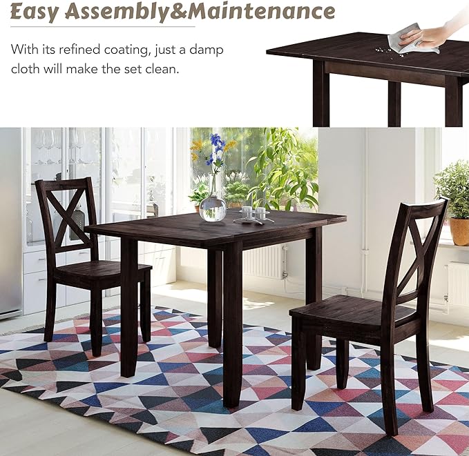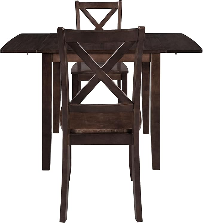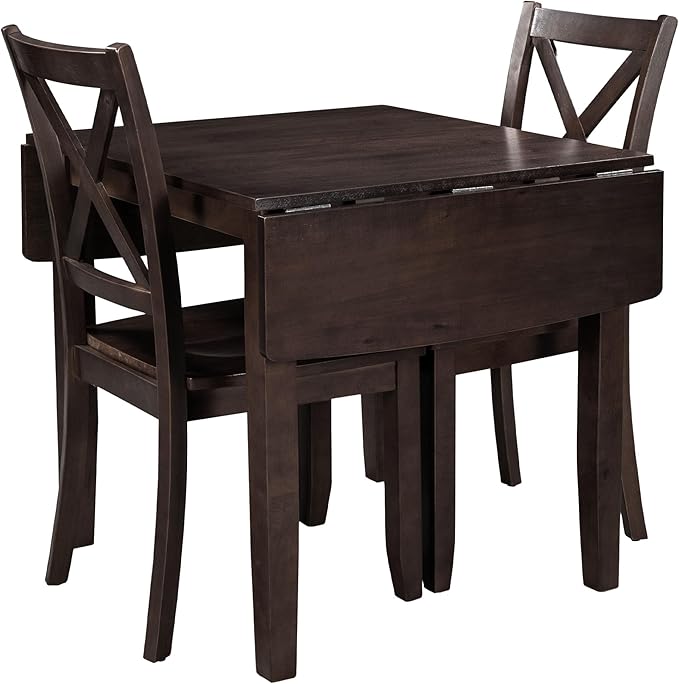 NicBex Kitchen Table for 2 Dining Table with Chairs 3-Piece Wood Drop Leaf Breakfast Nook Dining Table Set with 2 X-Back Chairs for Small Places, Farmhouse Style, Espresso