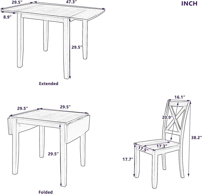 About This Solid Wood Retractable set: Both sides of the table are designed with retractable fallen leaves to save space....