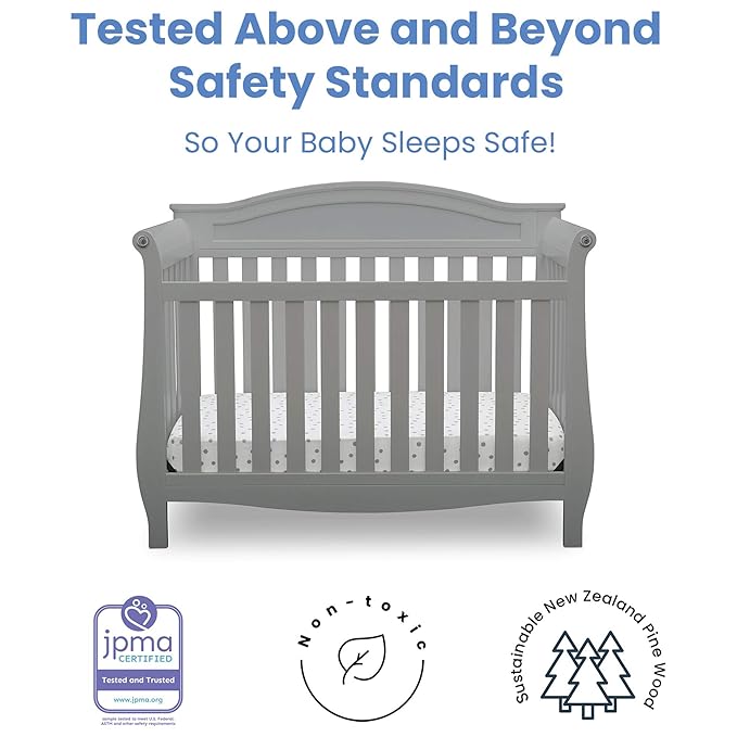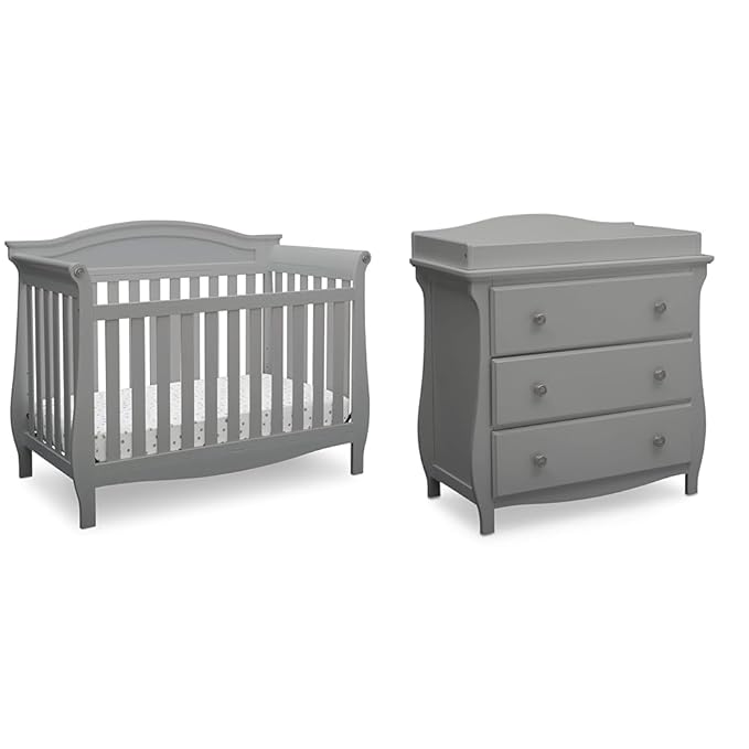 Delta Children Lancaster 4-in-1 Convertible Baby Crib & 3 Drawer Dresser with Changing Top, Grey