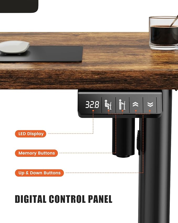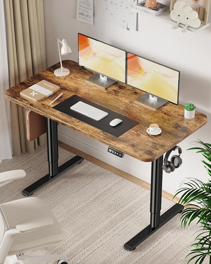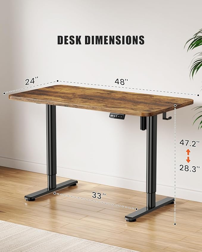 Electric Standing Desk Adjustable Height Stand Up Desk, 48" x 24" Sit Stand Desk, Low Noise Home Office Desk, Computer Desk with Splice Board, Child Lock & Memory Function, Rustic Brown