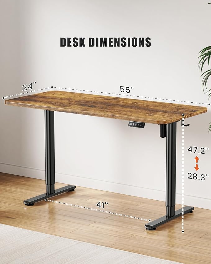 Electric Standing Desk Adjustable Height Stand Up Desk, 55" x 24" Sit Stand Desk, Low Noise Home Office Desk, Computer Desk with Splice Board, Child Lock & Memory Function, Rustic Brown