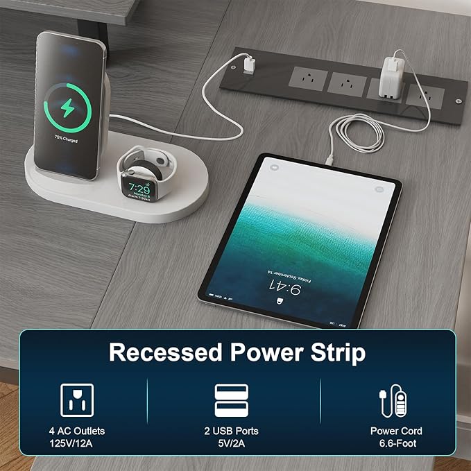 About This L Shaped Desk with LED Lights: The L shaped desk is equipped with LED light strips which can...