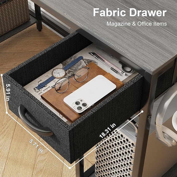 47 Inch L Shaped Desk Gaming Desk with LED Strip & Power Outlet, Reversible L-Shaped Computer Desk with Storage Shelf & Drawer, Corner Desk with Hook & Monitor Stands, Home Office Desk