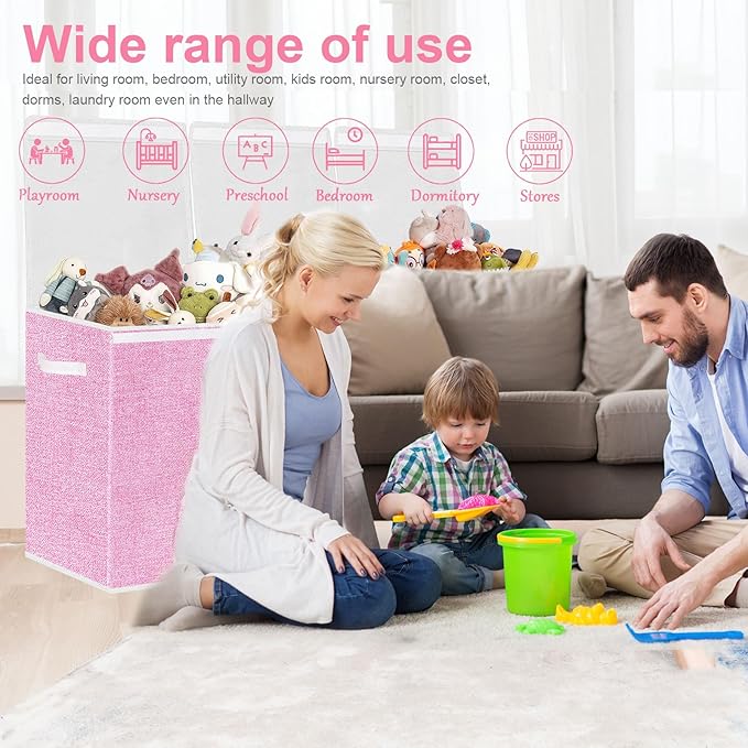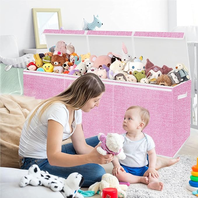 Extra Large Toy Box for Kids,Collapsible Toys Storage Chest Boxes Organizers with Dividers for Boys,Girls,Closet,Nursery,Playroom 35.8"x12.6"x16"(Dark Pink)