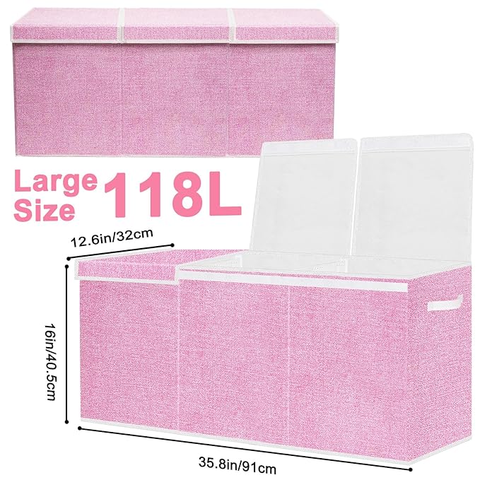 About This š¬[Extra Large Capacity Toy Box]This kids toy box measures 35.8"x12.6"x16"(91x32x40.5 cm),Can hold more than 118 liters.which is large...