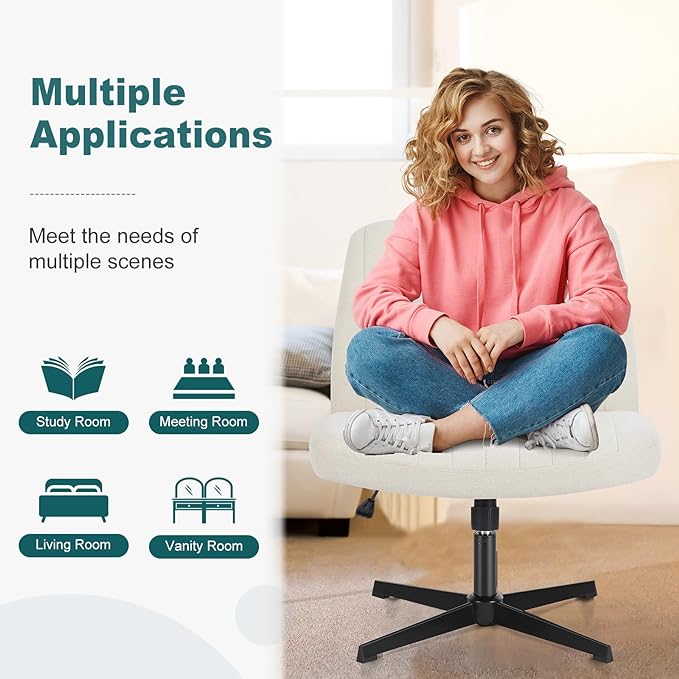 OLIXIS Cross Legged Armless Wide Adjustable Swivel Padded Home Office Desk Chair, White