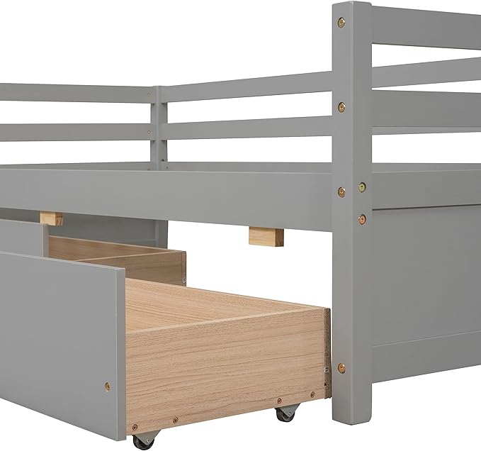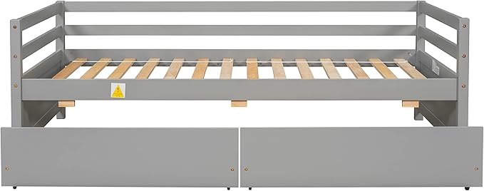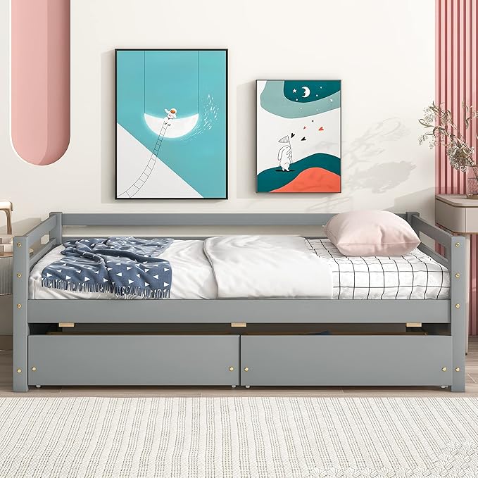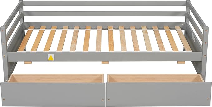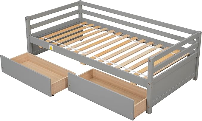 Twin Daybed with 2 Storage Drawers,Pinewood Twin Size Daybed Frame with Guardrail,for Boys/Girls/Teens Bedroom, Easy to Assemble, No Box Spring Needed,Grey