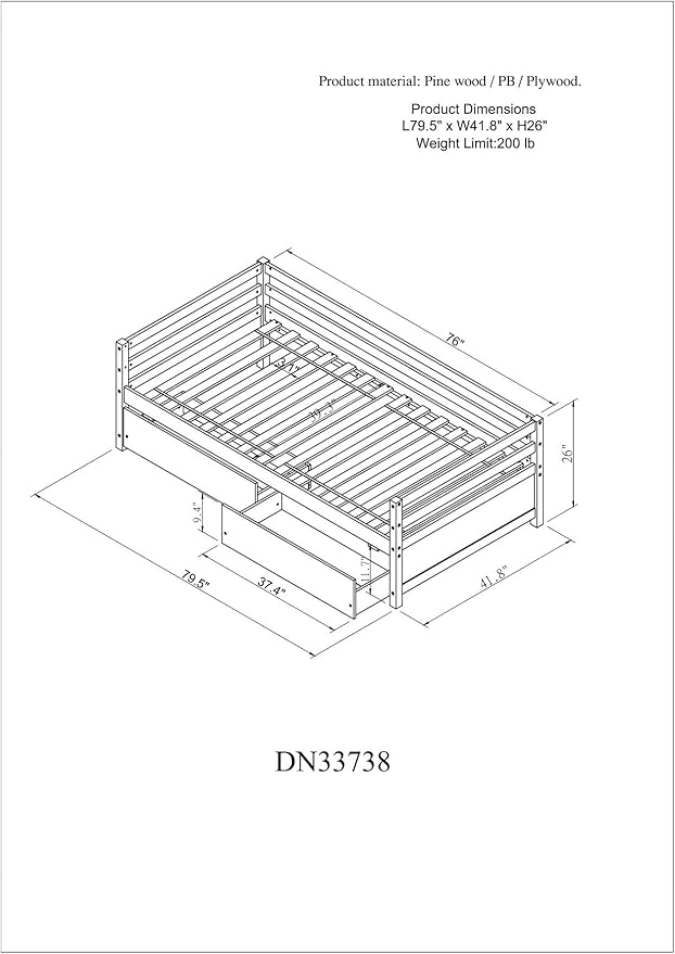 About This 【Twin bed with two drawers】 comes with two spacious drawers, the length of which is equivalent to the...