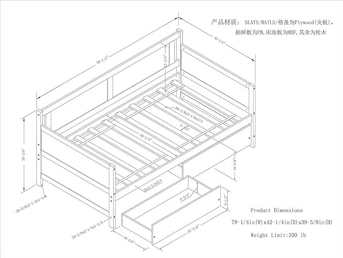 About This 【Twin bed with two drawers】 comes with two spacious drawers, the length of which is equivalent to the...