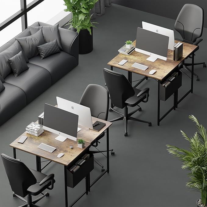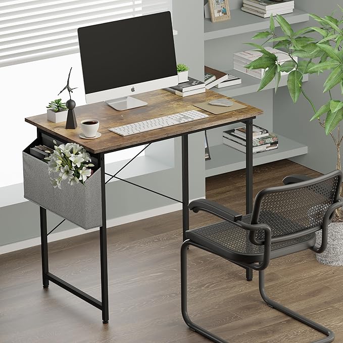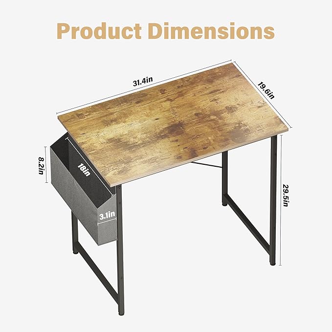 HealSmart Writing Study Worktable for Bedroom Small Desk, Modern Simple Style PC Table with Storage Bag, 32 Inch, Brown-New Version