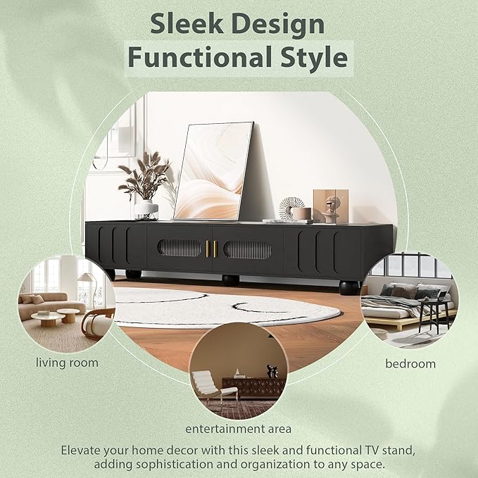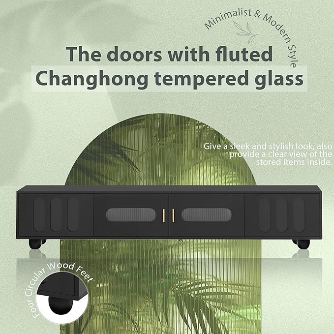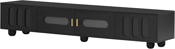 Merax Modern TV Stand for Televisions up to 80 Inches, Entertainment Center with Glass Door, 2 Drawers Wood Storage Cabinet with Solid Legs and Metal Handles for Living Room, 70.90" Length, Black