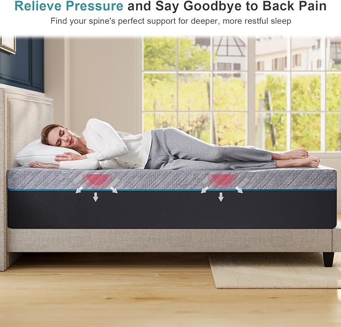 Queen Size Mattress,12-Inch Queen Foam Mattress in Box,Edges Support for Sleep Supportive,60" X 80" X 12",Grey