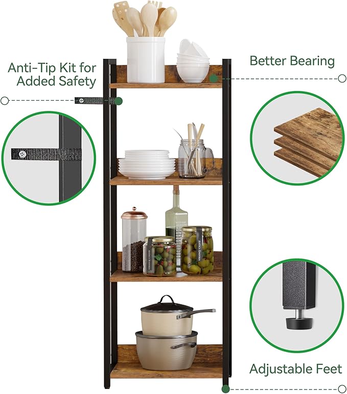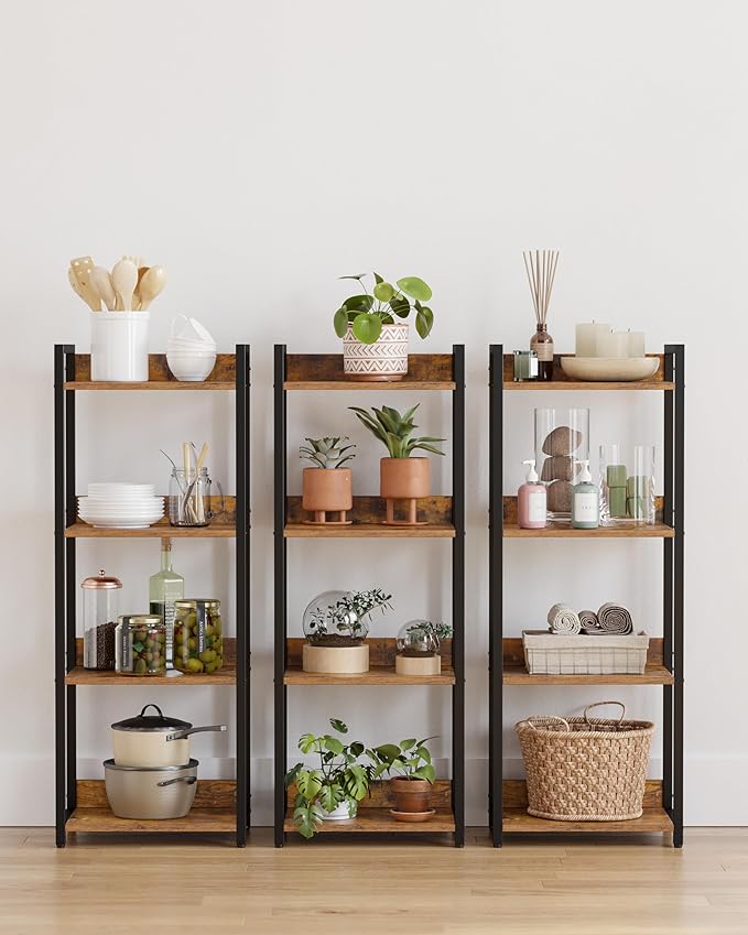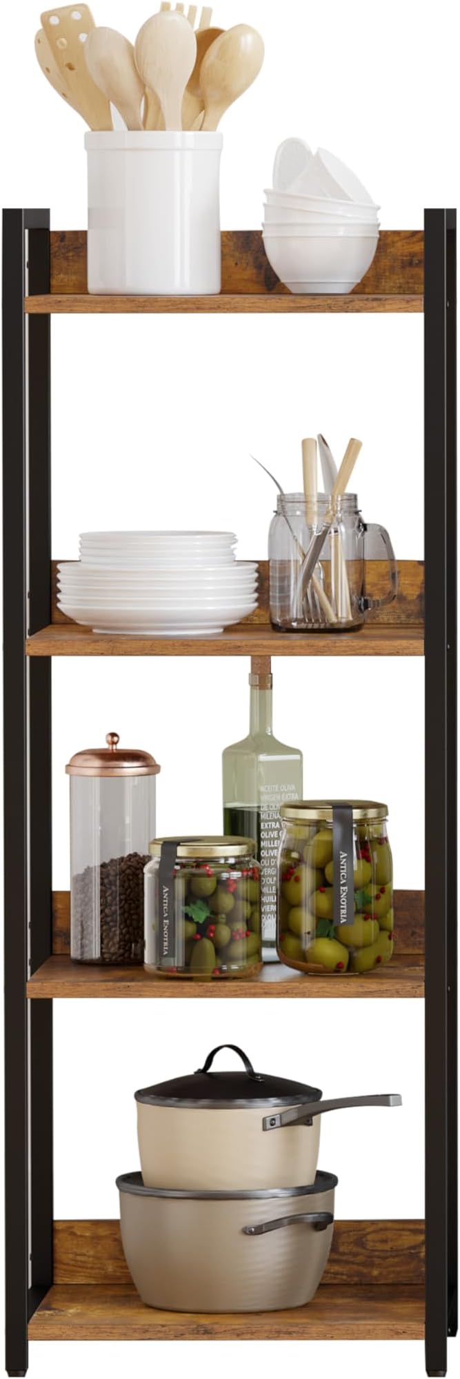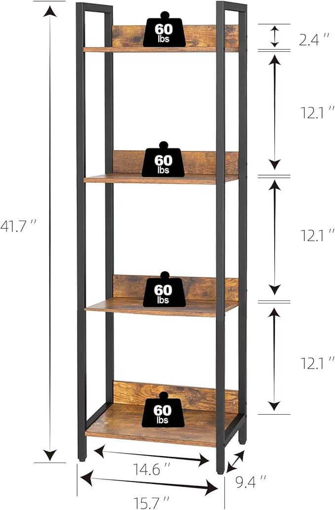 4-Tier Bookshelf, Narrow Bookcase with Open Shelves, Short Book Shelf Coner Shelf for Living Room, Bedroom, Home Office, Study, Bathroom,9.4 x 15.7 x 41.7 Inches, Rustic Brown and Black