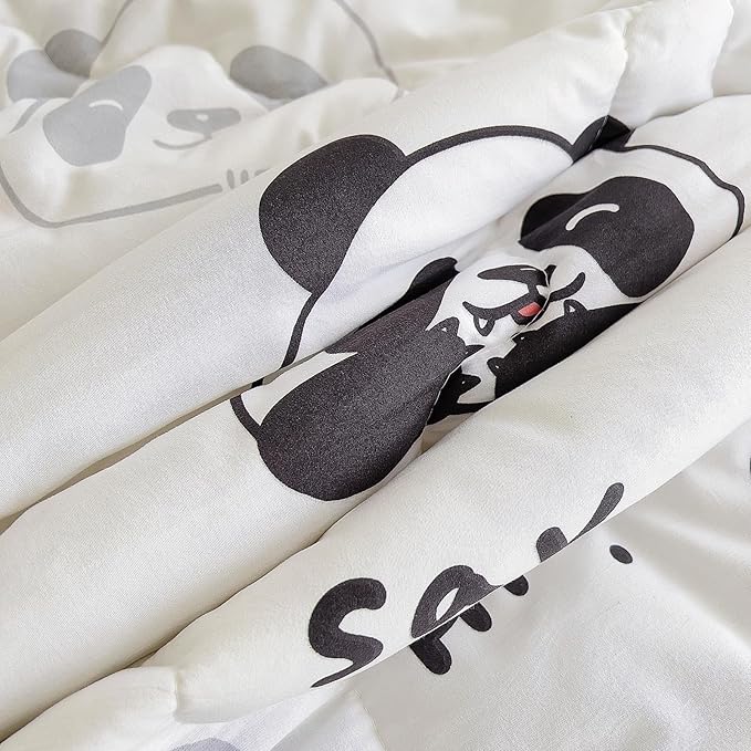 7 Piece Kids Panda Comforter Set Full Size - Black White Cute Panda Bedding Set Bed in A Bag for Girls Boys Teens - Soft Comfortable Machine Washable Bed Set