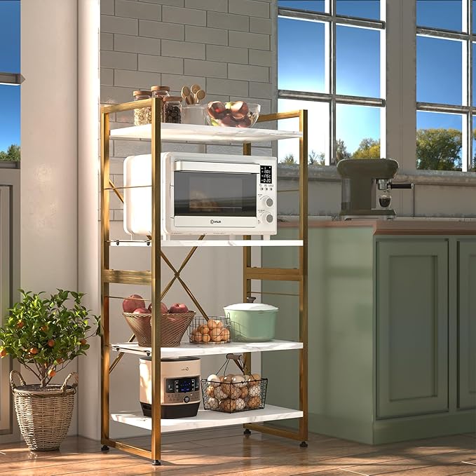 4 Tiers Bookshelf Adjustable White Faux Marble Organizer, Modern Small Bookcase for Small Space,Industrial Wooden Storage Display Rack and Storage Organizer for Living Room Home Office(Glod)