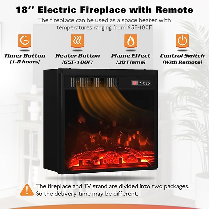 About This TV Stand with Fireplace: The item will be delivered in two packages. Equipped with fireplace, the TV stand...