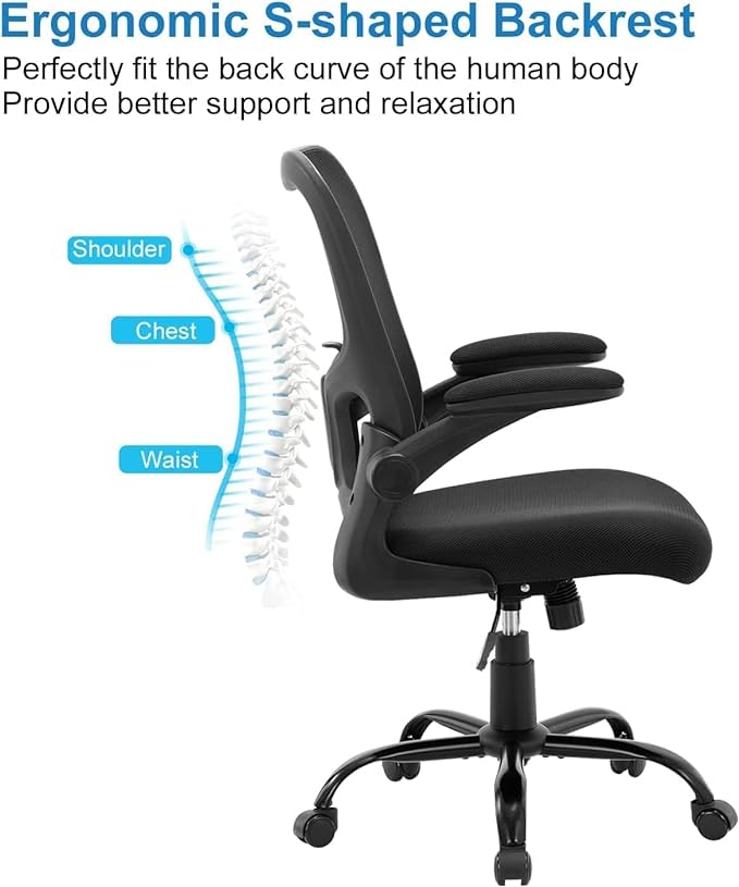 Office Chair Ergonomic Desk Chair, Mesh Computer Home Office Desk Chairs with Adjustable Lumbar Support and Flip-up Armrests, Swivel Comfy Task Executive Chair, Black