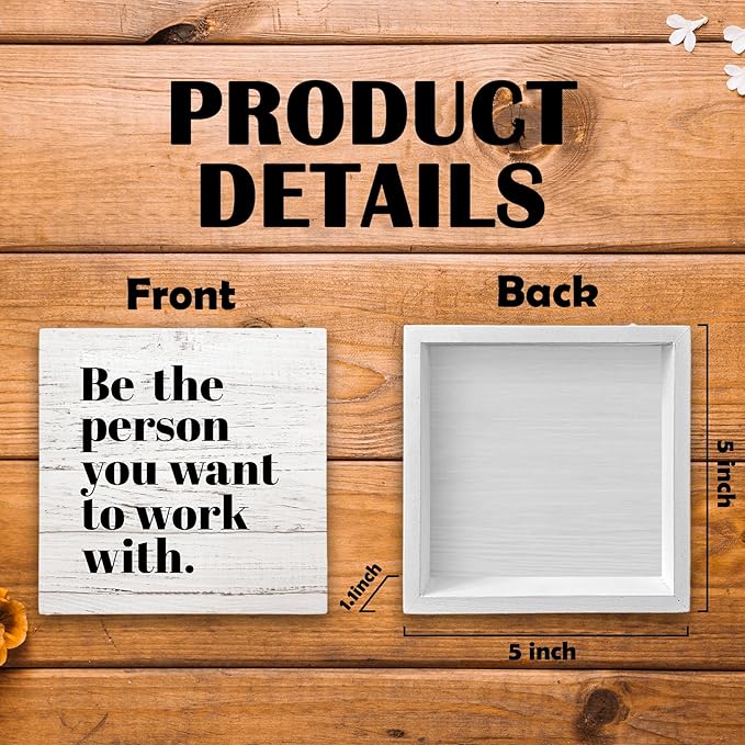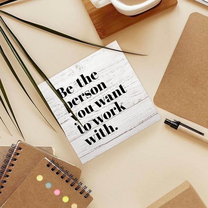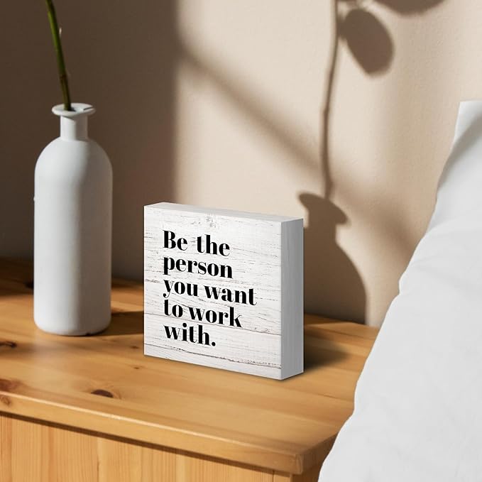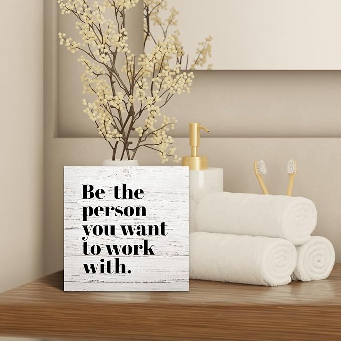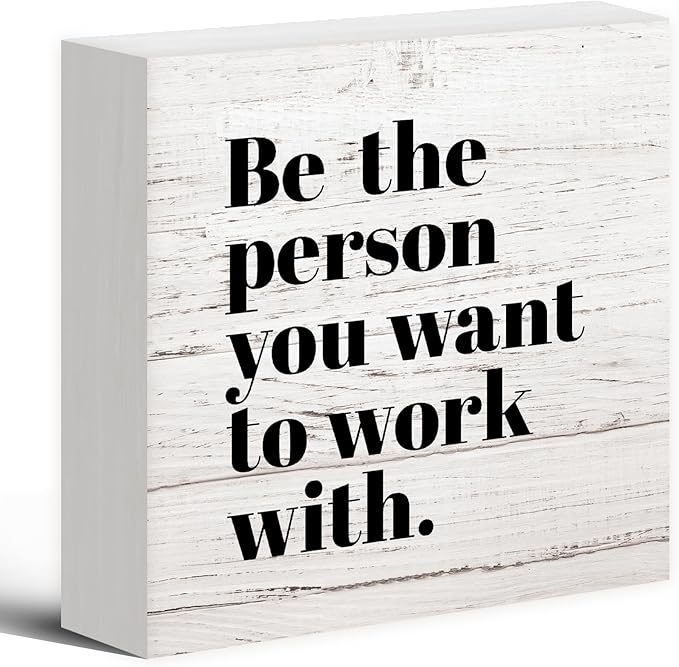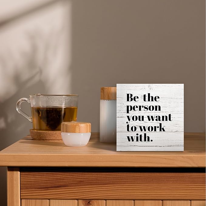 Be The Person You Want to Work With Inspirational Black Wood Box Sign Desk Decor, Teamwork Motivational Wood Grain Wooden Block Sign Decorations for Home Office Workplace Wall Tabletop Shelf Decor