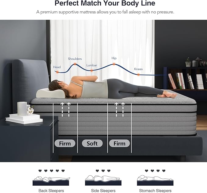 King Size Mattress, 16 Inch Hybrid King Mattress in a Box with Memory Foam, Individually Wrapped Pocket Coils Springs for Motion Isolation, Pressure Relief, Edge Support, Medium Firm