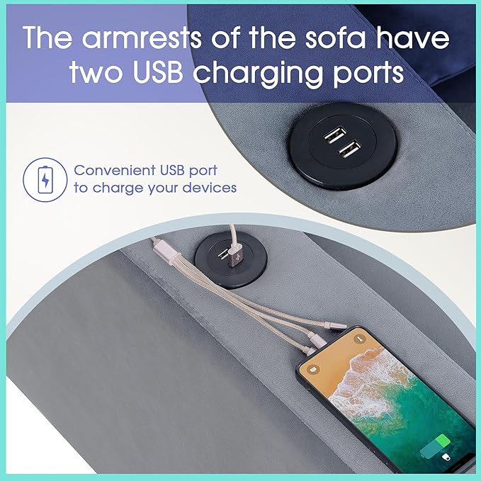 About This Intimate Design: The armrest of the sofa is equipped with 2 charging ports, which allows people to watch...