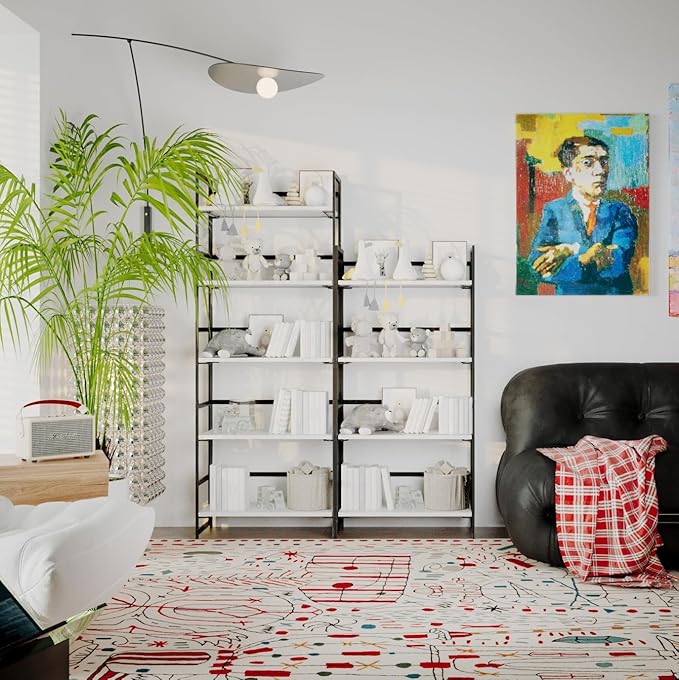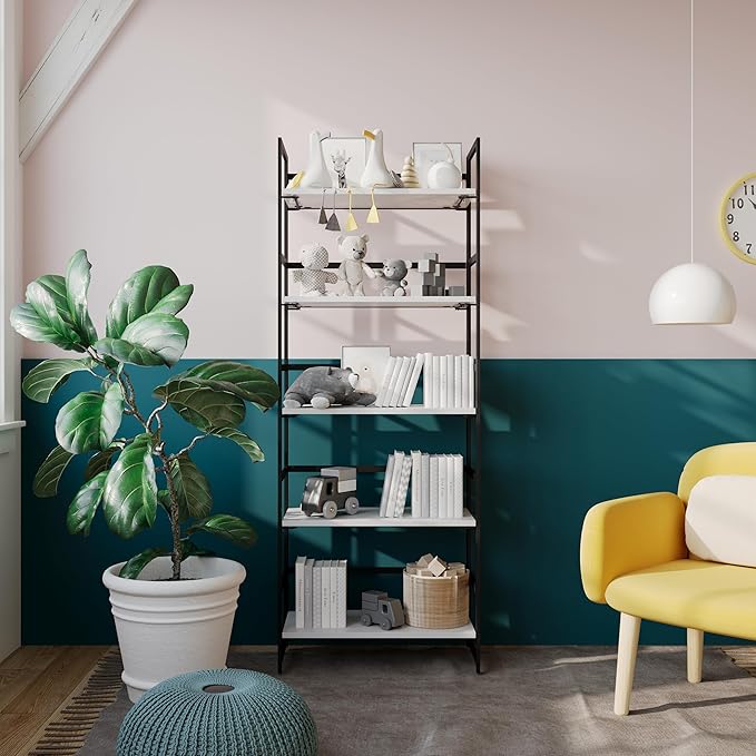 No-Assembly Folding Bookshelf Storage Shelves 5 Tiers Vintage Multifunctional Plant Flower Stand Storage Rack Shelves Bookcase for Home Office White&Black