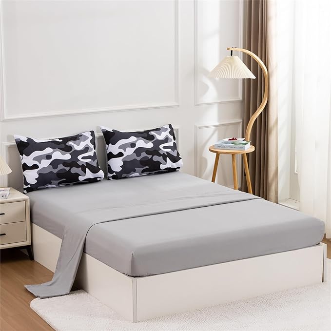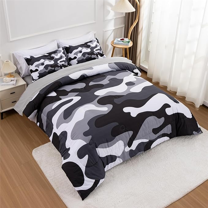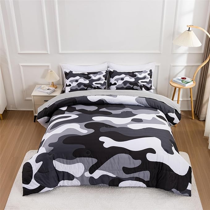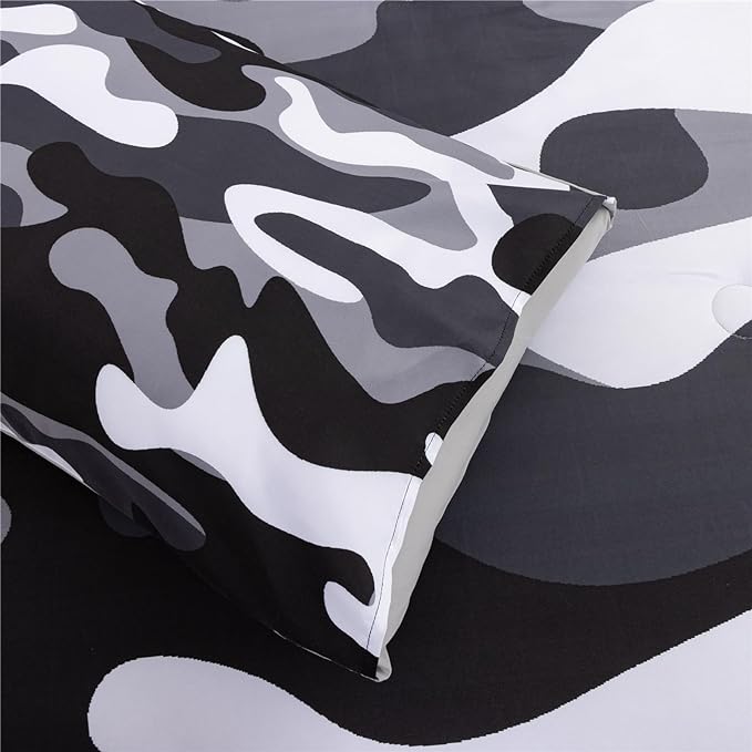 Meeting Story Camouflage Bedding Set, Colorful Pattern Style Comforter Set, 5 PCS One Comforter Two Pillowcases Two Sheets in One Bag, All Season Bedspread for Teens Adults (Grey,Queen5pcs