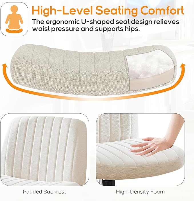 Criss Cross Chair, Cross Legged Office Chair, Wide Comfty Desk Chair, No Wheels Armless Computer Task Chair, Swivel Fabric Vanity Home Chair, Height Adjustable
