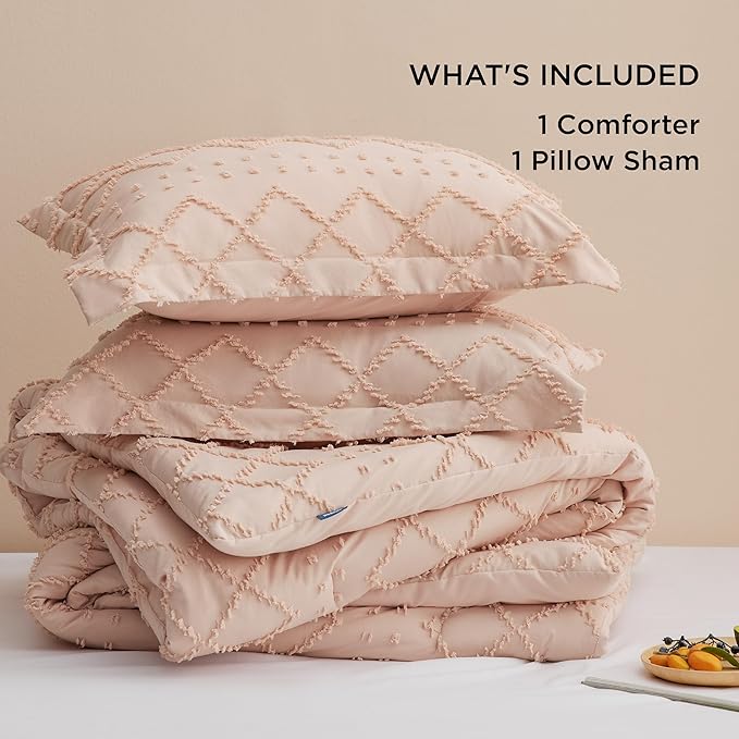 Bedsure Twin XL Comforter Set - Coral Pink Twin Extra Long Comforter Set for College, Shabby Chic Dorm Bedding Set, 2 Pieces Boho Farmhouse Bed Set, includes 1 Pillow Sham