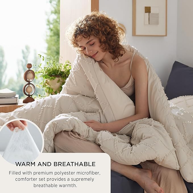 Bedsure Twin XL Comforter Set - Beige Twin Extra Long Comforter Set for College, Shabby Chic Dorm Bedding Set, 2 Pieces Boho Farmhouse Bed Set, includes 1 Pillow Sham