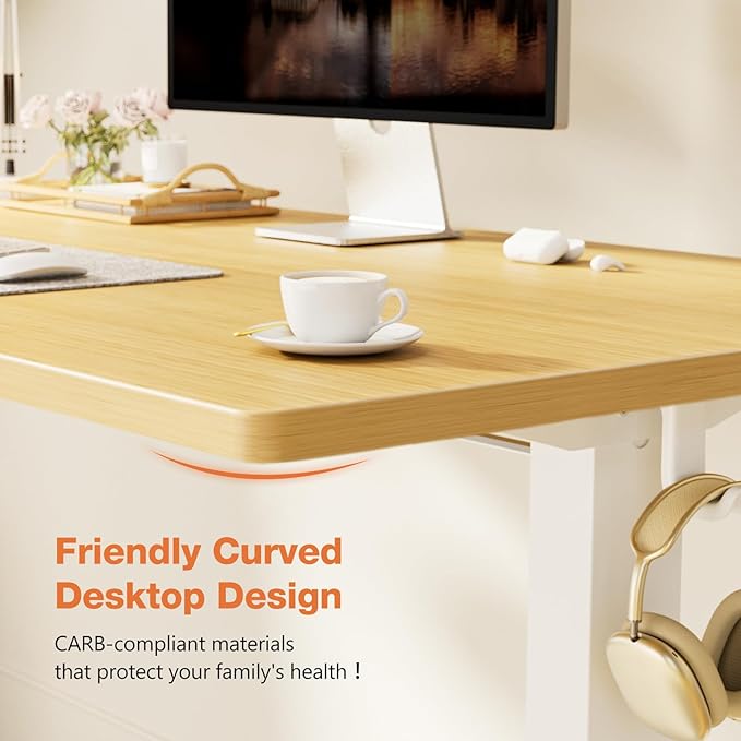 Sweetcrispy Electric Adjustable Height Standing Desk - 48 x 24 inch Sit to Stand Up Desk with Splice Board, Rising Home Office Computer Table with 2 Hook and Wire Hole for Work