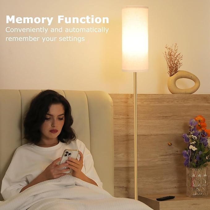 Ambimall 64'' Floor Lamps for Living Room with Remote Control and Stepless Dimmable Colors Temperature & Brightness, 9W Bulb Included(Beige Lampshade & Gold Pole)