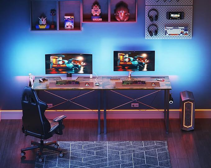 KKL Small Desk with Power Outlets and USB Port Computer Desk for Home Office Gaming Simple Modern Style Writing Desks with Storage Bag Headphone Hook, 32 inch, Rustic Brown