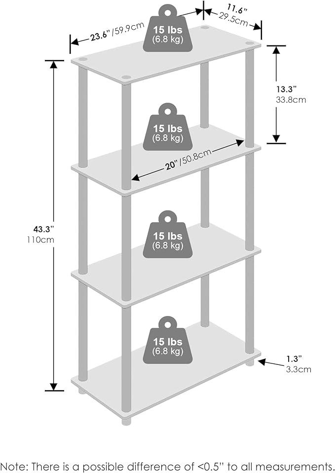 Furinno Turn-N-Tube 4-Tier Multipurpose Shelf Display Rack, Shelving Unit, Bookcase, Light Blue/White
