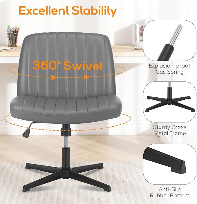 Criss Cross Chair, Cross Legged Office Chair, Wide Comfty Desk Chair, No Wheels Armless Computer Task Chair, Swivel Vanity Home Chair, Height Adjustable