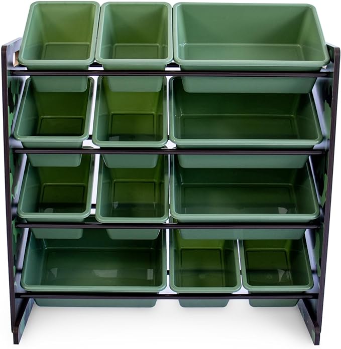Humble Crew, Army Green Camo Hunter Toy Organizer with 12 Plastic Storage Bins