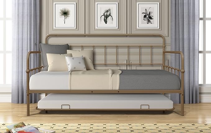 Twin Size Bed W/Slats,Metal Frame Daybed with Trundle & Anti-Noise Design,Space-Saving,Easy to Install,for Living Room Bedroom Apartment,Bronze