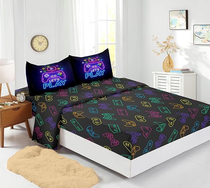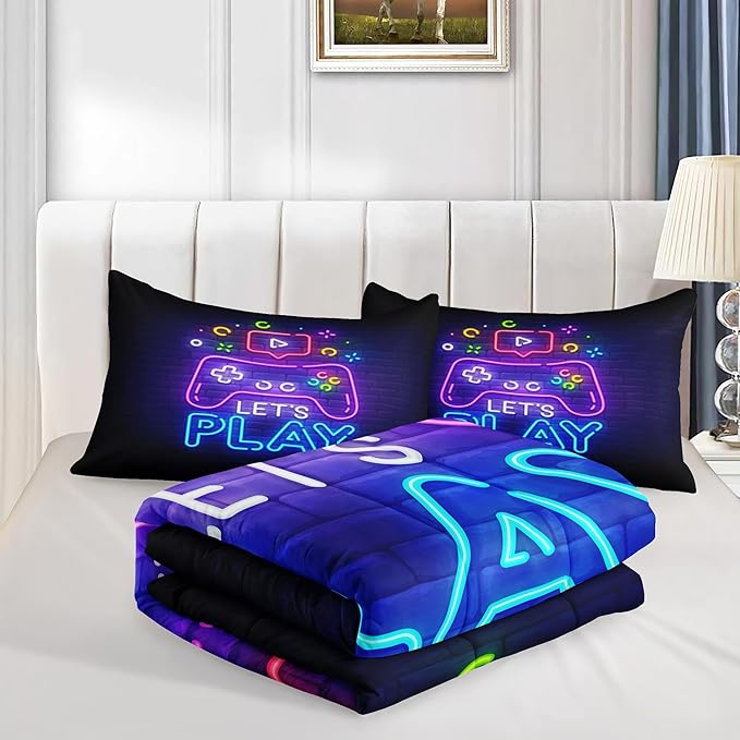 Gamer Comforter Sets Queen 6PCS,Queen Purple Bedding Sets for Boys,Gaming Comforter Set,Queen Size Bedding Sets for Boys,Bed in A Bag with Sheets(Queen,Purple Color)