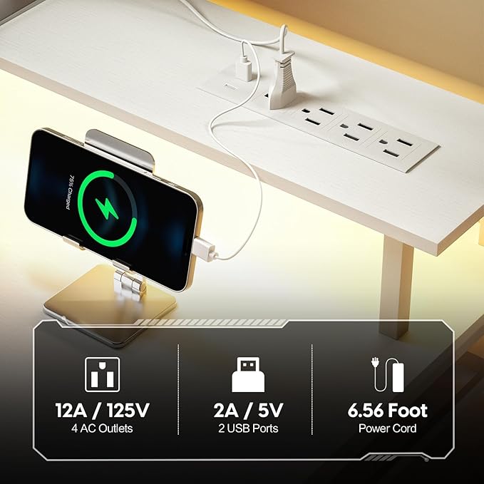 Computer Desk with Drawers and Storage Shelves, Home Office Desk with LED Lights & Power Outlets, Gaming Desk with Monitor Stand, Writing Study Desk, Kids Small Desk for Bedroom, White