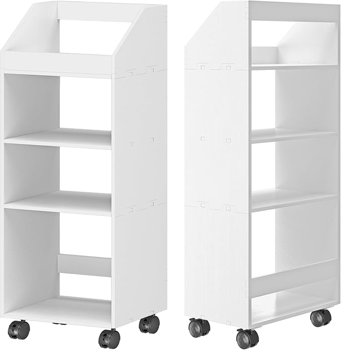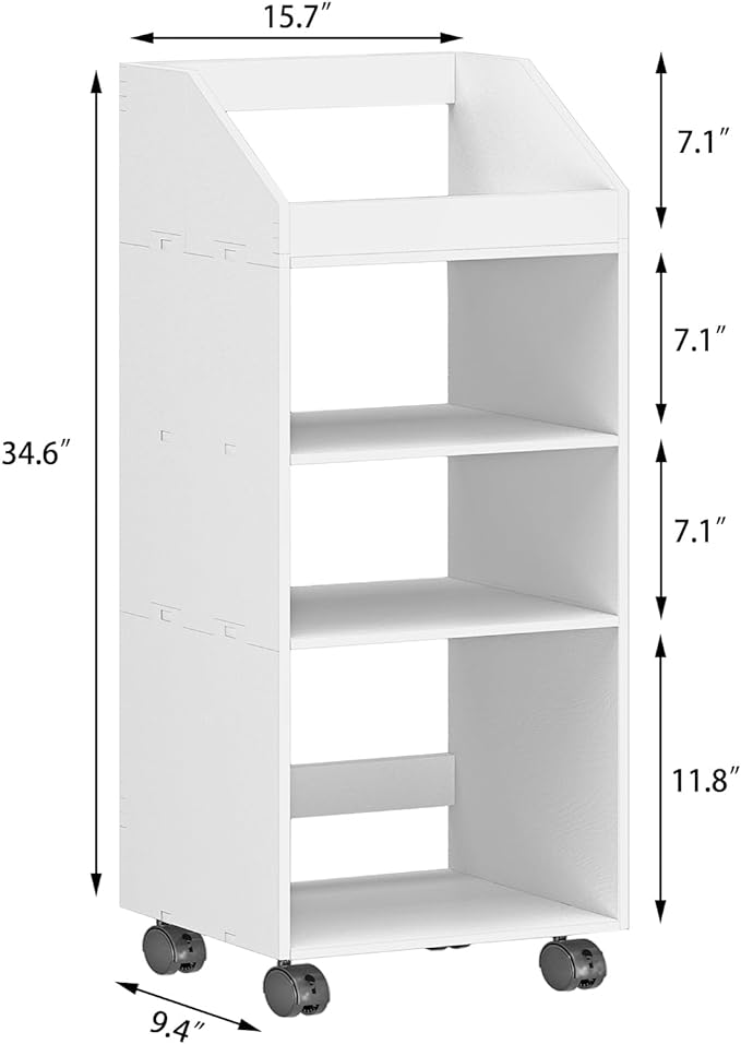 About This [Compact Design]: Our rolling bookcaseis a desirable solution for limited spaces, measuring 9.4”D x 15.7”W x 34.6”H, allowing...