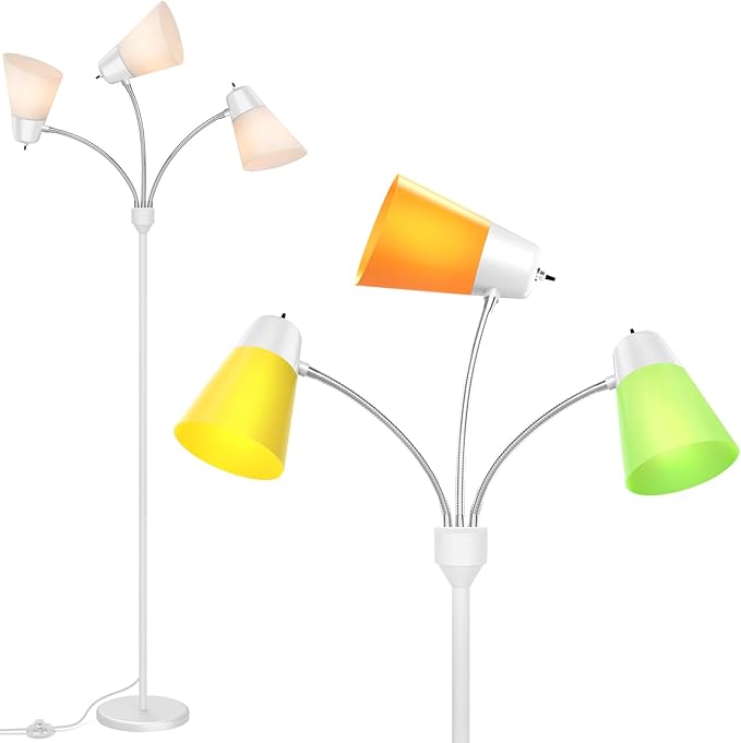 FOLKSMATE LED Floor Lamp, Medusa 3 Head Modern Adjustable Gooseneck Tall Standing Light for Living/Kids Room, Bedroom, White