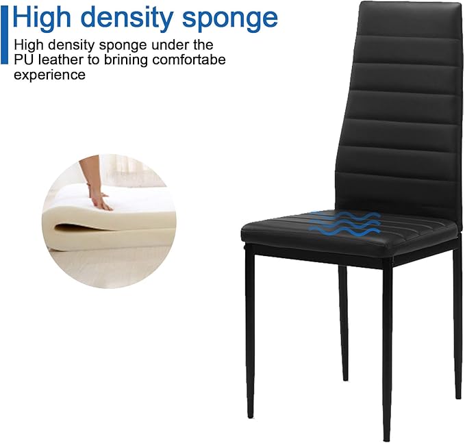 NicBex Small Dining Table Set for 4 Kitchen Table Set 5 Pieces Dining Table Set Kitchen Room Tempered Glass Dining Table with 4 Faux Leather Chairs for Small Space, Black