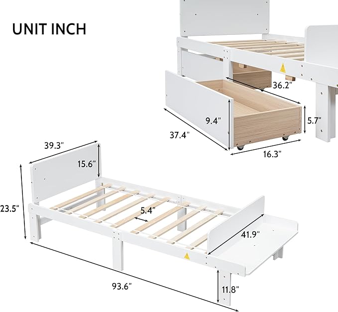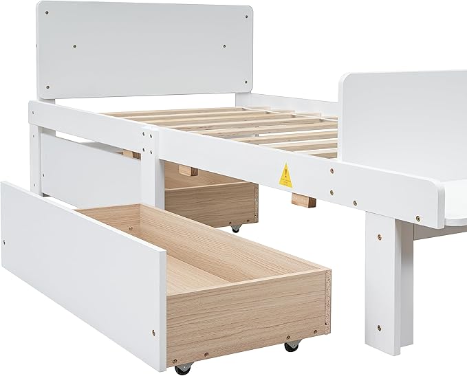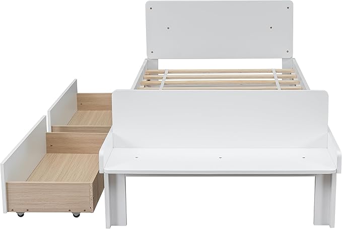 About This ♥[Twin Bed with Storage]This twin bed frame comes with 2 spacious drawers, each with 4 wheels. Drawers provide...