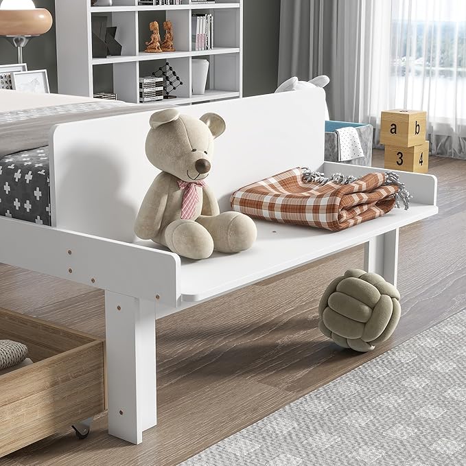 Twin Bed with 2 Drawers,Storage Platform Bed with Footboard Beach and Headboard,Pine Wood Twin Size Bed Frame High Stable for Kids,Boys,Girls,Teens, No Box Spring Needed,White