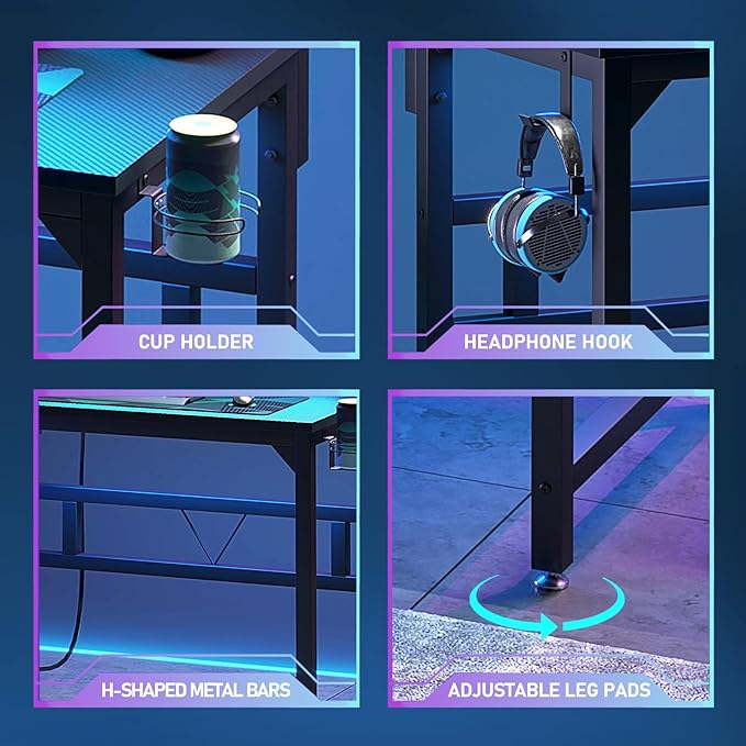 About This ✔ [LED STRIP LIGHTS] TREETALK home office desk with built-in LED Strip light, which include 20 static colors,...